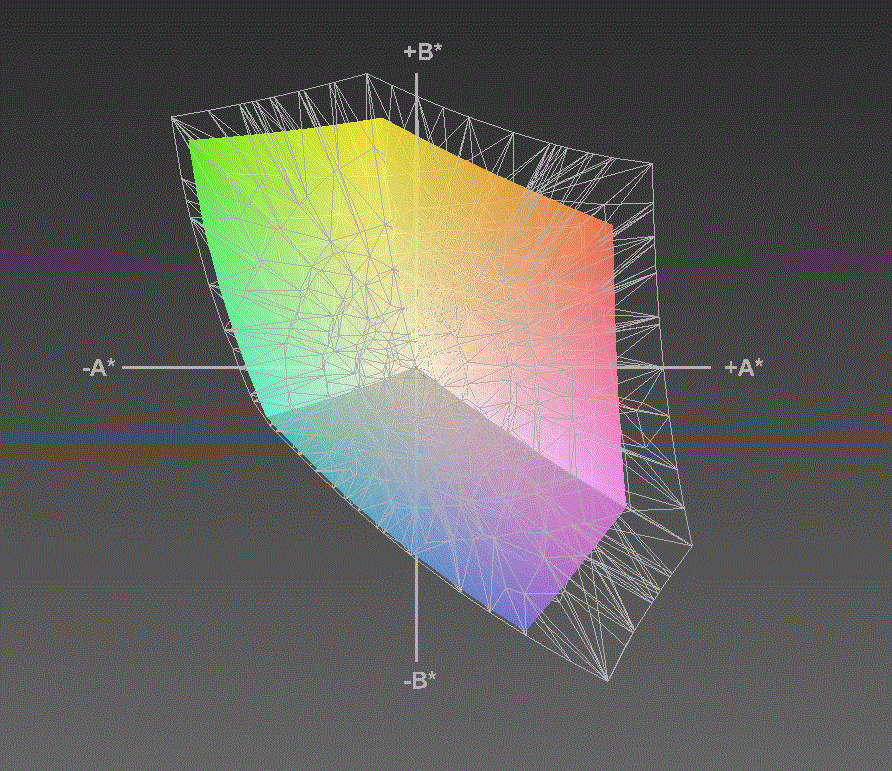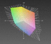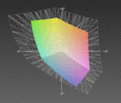 Auf Seiten des Farbraumes hat das Samsung-Panel keine echten Vorteile zu bieten, es könnte jedoch schlimmer sein. Adobe RGB als auch sRGB können nicht abgedeckt werden. Im Vergleich zu einem Display mit erweitertem Farbraum (HP Envy 14) muss sich das CX620MX wie zu erwarten geschlagen geben. Grundsätzlich ordnet sich das Panel in dieser Hinsicht inmitten der breiten Masse aktueller Displays bei günstigen Notebooks ein.