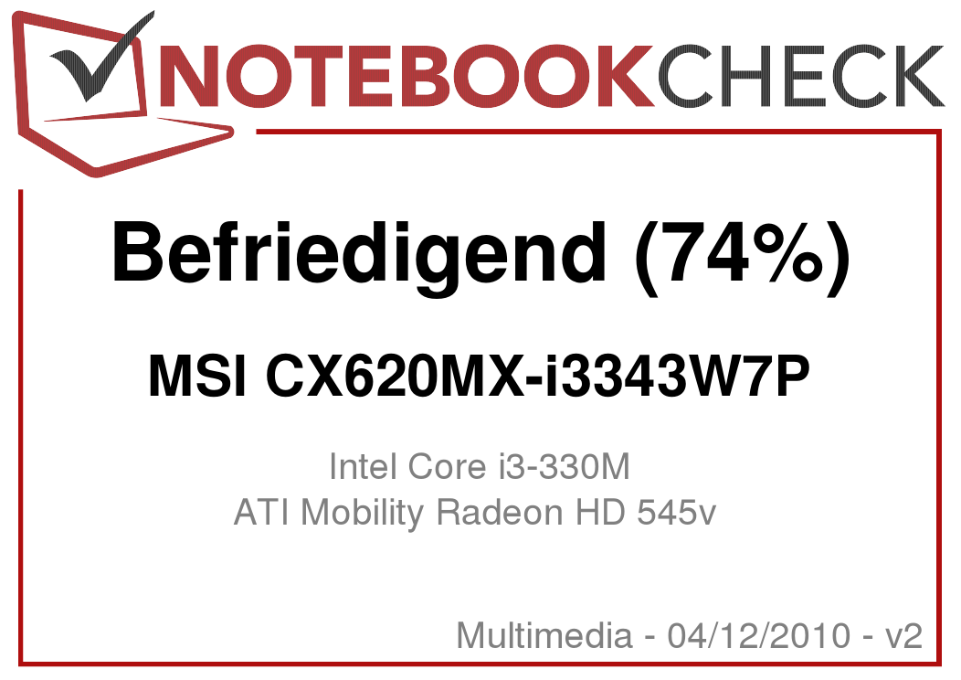 Der MSI CX620MX mit Core i3-330M (2.13 GHz) will ein mobiler Allrounder mit Unterhaltungsambitionen sein. Auf Seiten der Anwendungsleistung gelingt ihm das passabel, wir erleben solide Core i3-Leistung.