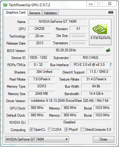Überraschenderweise liegen die vom CX70 erzeugten Frameraten oftmals unter denen seines Vorgängers. Der Grund liegt in der Anbindung des Grafikspeichers begraben. Der GeForce GT 740M Kern ist nur über eine 64 Bit breite Leitung mit dem Speicher verbunden. Beim Vorgängermodell hat MSI noch eine 128 Bit breite Leitung eingesetzt. Daher liefert das CX70 niedrigere Frameraten als theoretisch möglich wären.