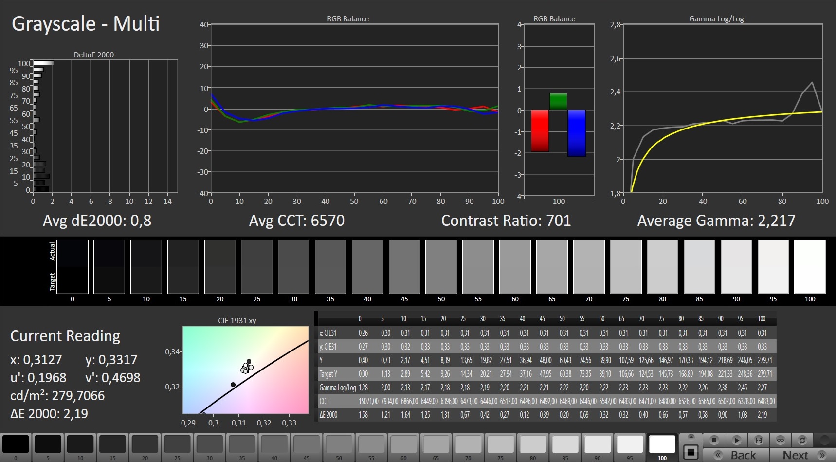 | Delta E Graustufen * | 4.2 | 7.2 -71% | 4 5% | 4.2 -0% | 5 -19% | 1.88 55% |
