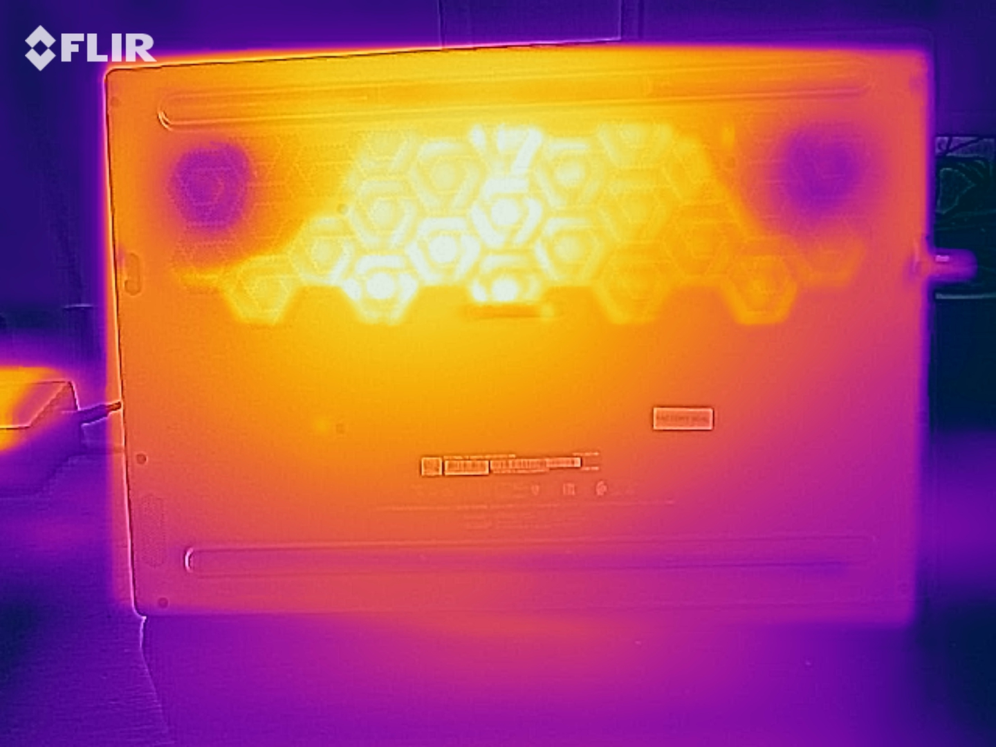(-) Auf der Unterseite messen wir eine maximalen Wert von 55 °C (im Vergleich zum Durchschnitt von 43.3 °C).
