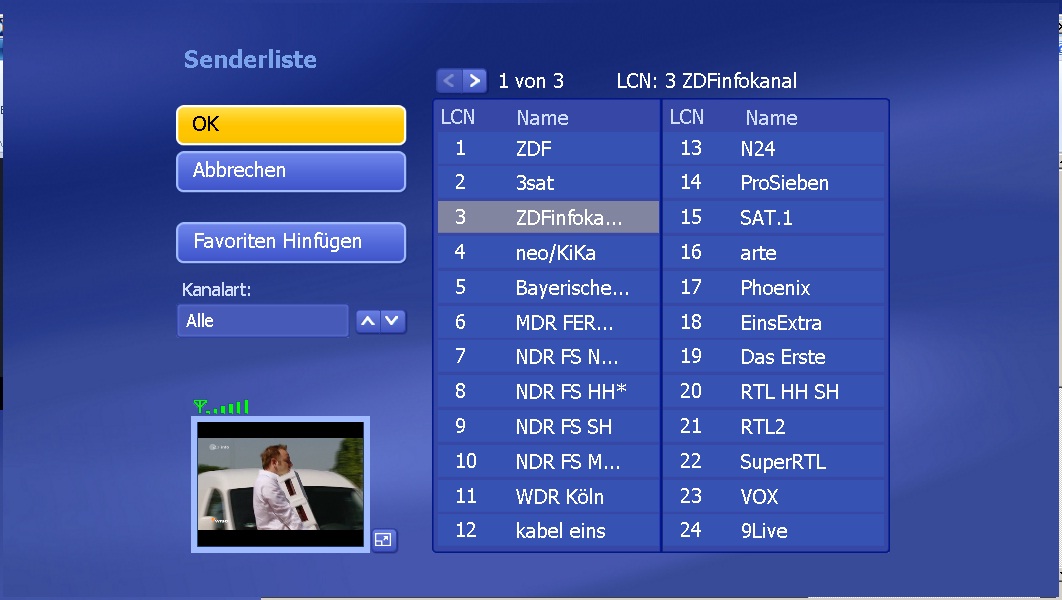 Ansonsten findet man eine Timer-Funktion, die Möglichkeit eine Favoritenliste anzulegen, TV-Aufnahmen zu verwalten und zu brennen und Screenshots anzufertigen.