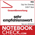 MSI bietet mit dem Digi Vox Diversity DVB-T Stick eine günstige Empfangslösung mit 2 Tunern, welche die Basisanforderungen im TV-Betrieb sehr gut bewältigt. Der Funktionsumfang und die mitgelieferte Software ist umfangreich, bietet aber im Detail nicht immer die intuitive und einfache Bedienung mancher Konkurrenzprodukte. Auch muss man manche Einschränkung hinsichtlich der Einstellungsmöglichkeiten hinnehmen. Gut gefällt die vergleichsweise geringe Leistungsaufnahme und eine Ressourcen schonende Tunerleistung, die erst beim PBP Modus im Doppeltuner-Betrieb das Test-Netbook an die Leistungsgrenze bringt.