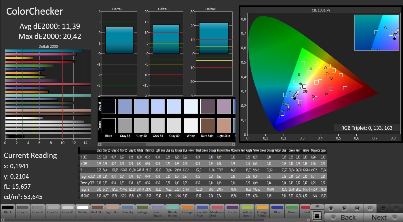 ΔE ColorChecker Calman: 11.39 | ∀{0.5-29.43 Ø4.78}