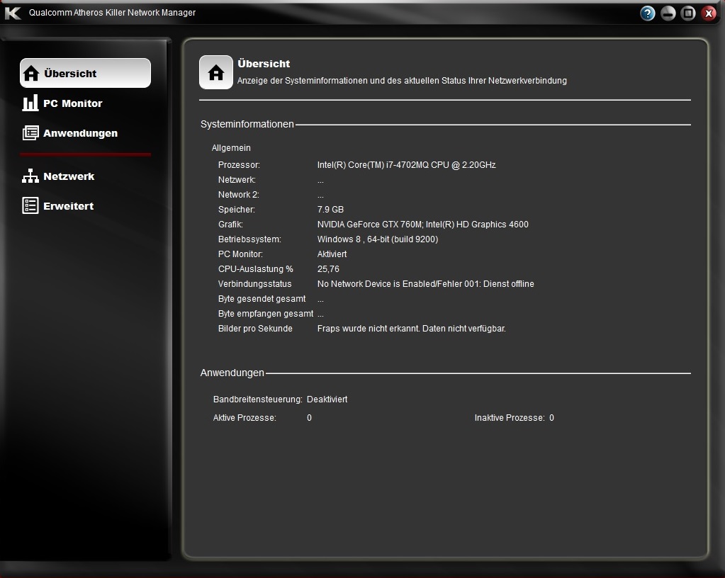 Dass MSI die Zielgruppe durchaus ernst nimmt, stellt der Netzwerk-Controller unter Beweis. Qualcomm hat die Killer e2200 angeblich auf die Bedürfnisse von Online-Spielern zugeschnitten (optimiertes Handling des Datenverkehrs etc.).