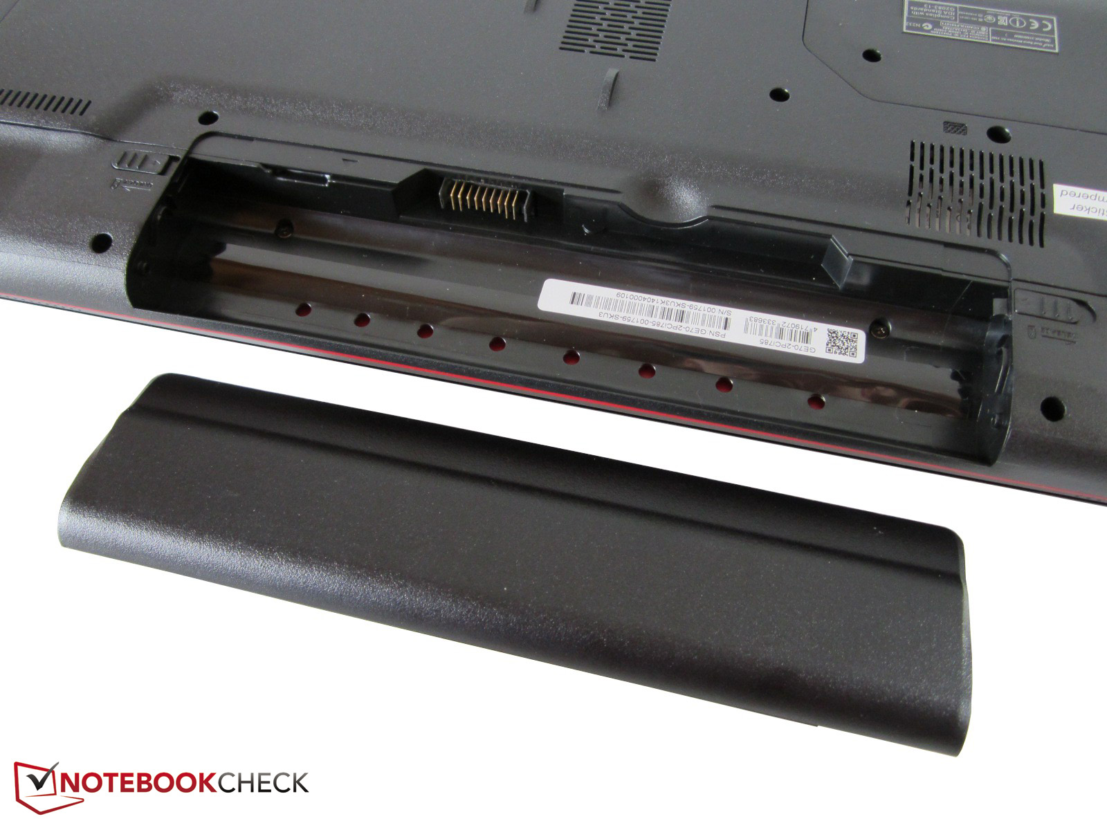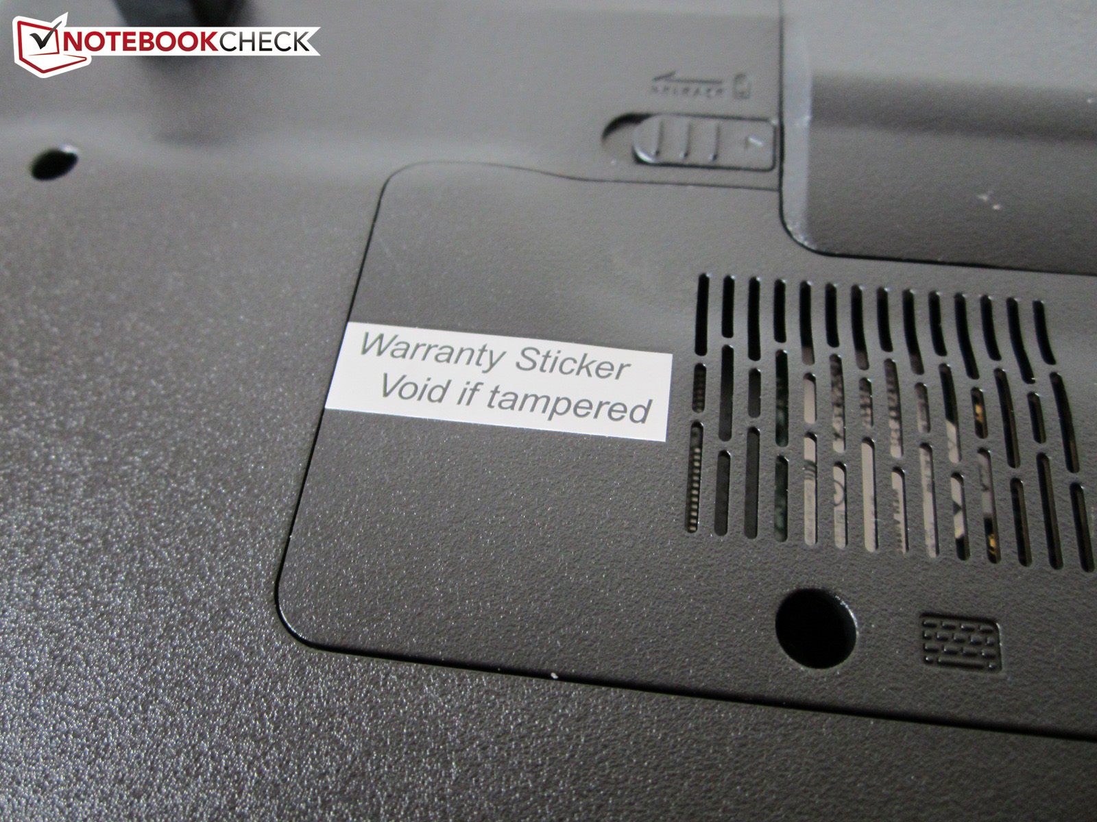 Da es sich um ein Shop-Gerät mit Garantieaufkleber handelte, konnten wir leider keinen Blick auf das Innenleben werfen. Die Größe der Wartungsklappe und die Lüftungsschlitze deuten allerdings darauf hin, dass neben dem Arbeitsspeicher und der Festplatte auch das Kühlsystem, der Prozessor und die Grafikkarte zugänglich sind. Falls Sie jetzt an ein Upgrade von CPU und GPU denken: Beide Chips hängen direkt am Mainboard, was einen Austausch verhindert.