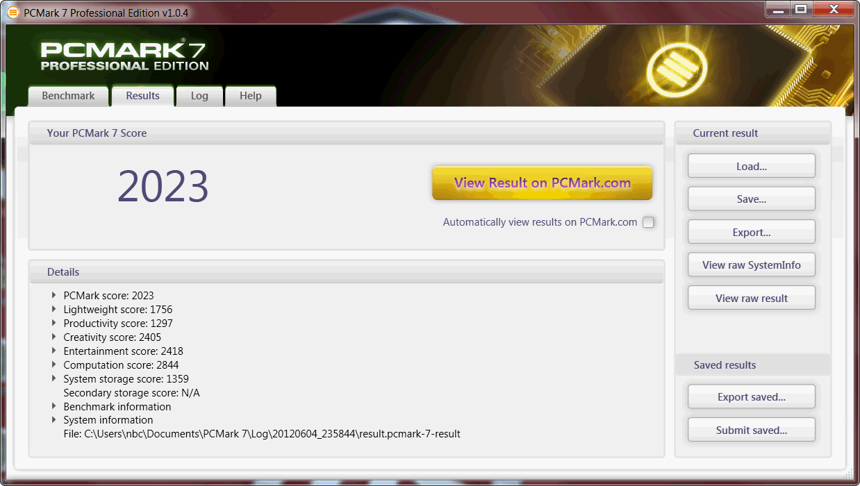 Über die Anwendungsperformance unterrichtet uns der PCMark 7, ein Test der alle Komponenten in Summe beurteilt. Wie auch der Windows-Leistungsindex zeigt der Futuremark-Test die Festplatte als Bremsklotz. 2.023 PCMarks sind ganz hübsch, werden aber spielend von jedem SSD-System getoppt: z. B. von den Subnotebooks Asus U36SD-RX114V (2.861) oder Dell XPS 13 (3.823), das nur eine integrierte GPU besitzt.