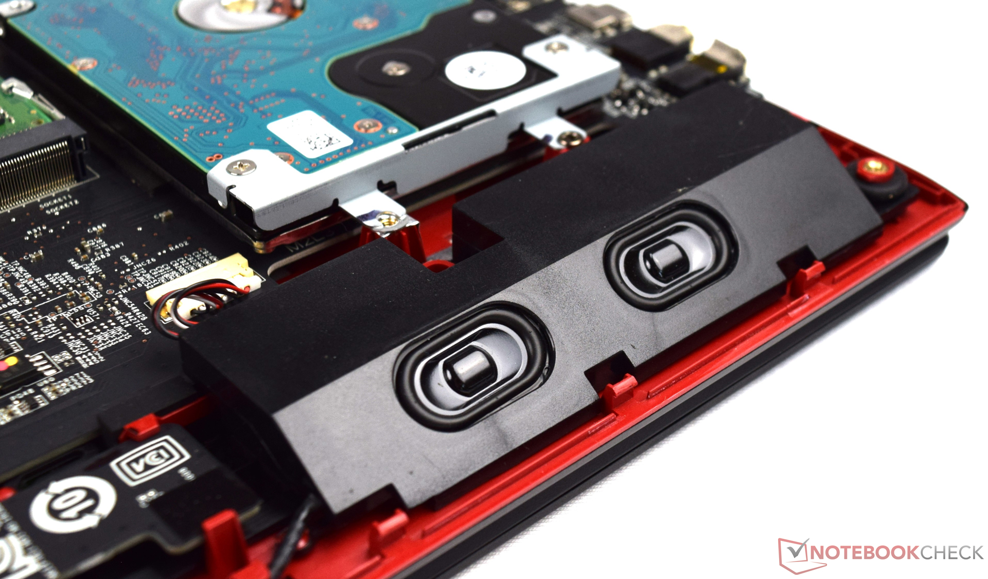 Das Soundsystem beim MSI GE72VR stammt von Dynaudio. Die Lautsprecher befinden sich schräg an der Vorderseite. Links und rechts warten jeweils 2 Speaker. Ein separater Woofer dient zur Wiedergabe von tiefen Tönen. Die maximale Lautstärke reicht für einen normalen Wohnraum mehr als aus. Die Klangqualität ist solide und genügt, um den einen oder anderen Film genießen zu können. Wenngleich das MSI GE72VR einen Subwoofer integriert hat, sollte insgesamt nicht zu viel vom Bassfundament erwartet werden. Höhen und Mitten sind tiefen Tönen überlegen. Daran ändern auch die Einstellungen der mitgelieferten Audiosoftware, Nahimic 2, nichts. Mit einem ordentlichen externen 2.1-System kann das Dynaudio System nicht mithalten. Gamer sollten ein gutes Headset bevorzugen.