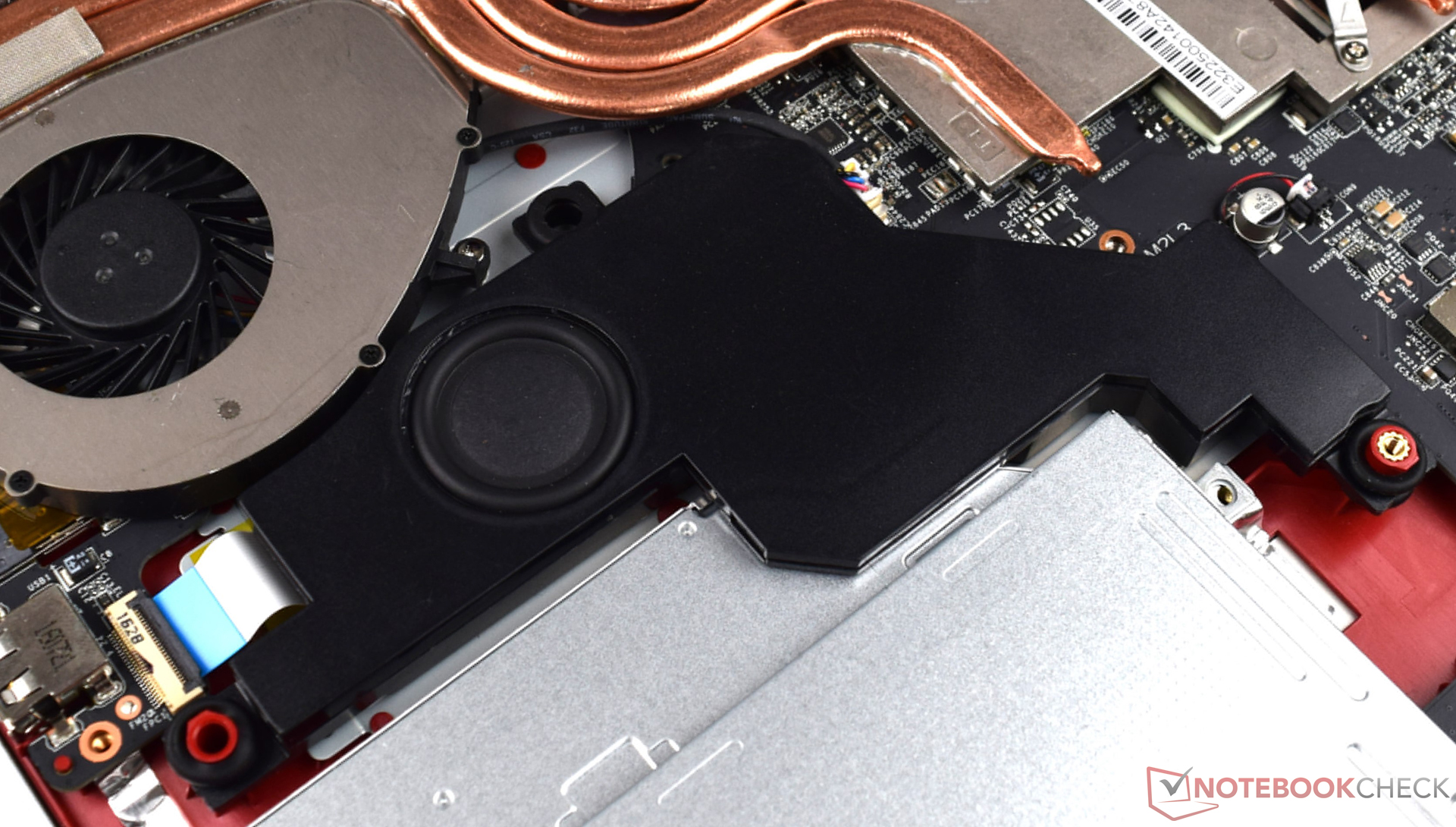 Die Wartungsmöglichkeiten beim MSI GE72VR gestalten sich recht großzügig. Zwar besitzt das Laptop keine separate Wartungsklappe, was aber nicht schlimm ist, denn die komplette Unterseite der Base kann entfernt werden. Beim Entfernen sollte allerdings mit Vorsicht vorgegangen werden, um keine Beschädigungen zu verursachen. Unsere Empfehlung ist es, die Abdeckung mit speziellem Hebelwerkzeug (aus Kunststoff) zu öffnen, da rundum sehr viele kleine Haltenasen zur Arretierung verbaut sind. Ist die Abdeckung entfernt, können die beiden Lüfter gereinigt oder das Gerät aufgerüstet werden.