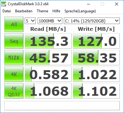 Um die Geschwindigkeit des eingebauten SD-Kartenslots zu testen, verwenden wir unsere Referenz-Speicherkarte Toshiba Exceria Pro SDXC 64 GB UHS-II. Der Benchmark AS SSD sowie das manuelle Kopieren von JPG-Dateien (je rund 5 MB) bestätigen magere Übertragungsraten um 20 MB/s. Wer oft Daten von einer SD-Karte kopiert, sollte auf andere, externe Geräte oder gar ein anderes Produkt zurückgreifen. Der Blick auf die Kontrahenten zeigt: Werte im Bereich von 80 MB/s sind keine Seltenheit.