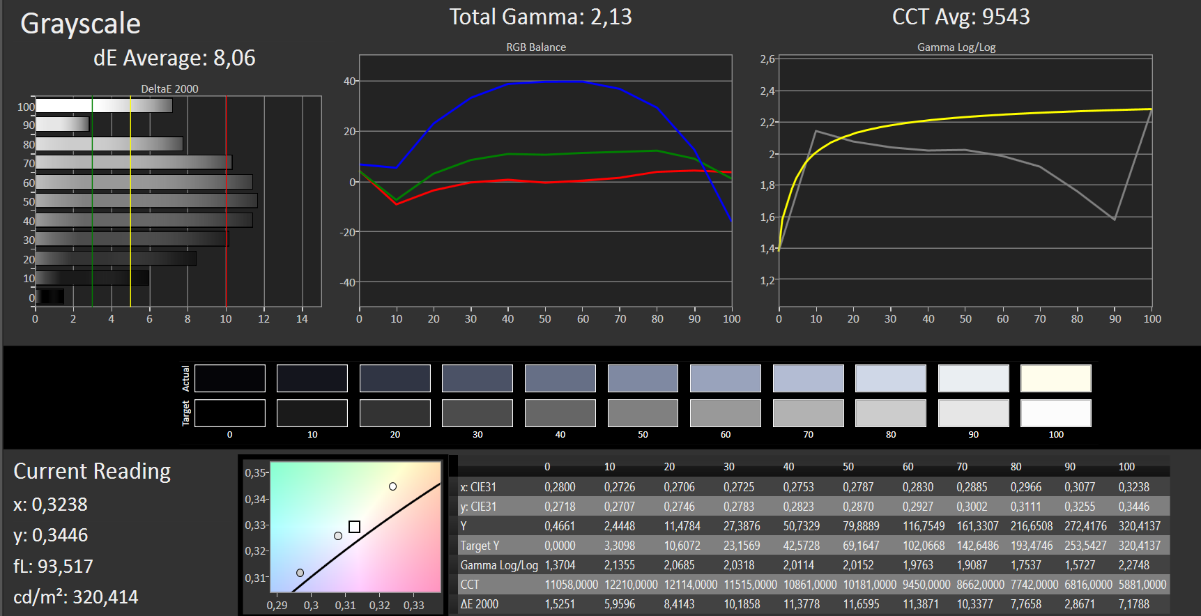 ΔE Greyscale Calman: 8.06 | ∀{0.09-98 Ø5}