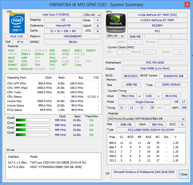 | MSI GP60-i740M245FD GeForce GT 740M, 4700MQ, Hitachi Travelstar Z5K500 HTS545050A7E680 | Acer Aspire V5-573G-54208G50aii GeForce GT 750M, 4200U, Seagate Momentus Thin ST500LT0 12-9WS142 | Asus N56VB-S4050H GeForce GT 740M, 3630QM, WDC Scorpio Blue WD7500BPVT-80HXZT3 | |