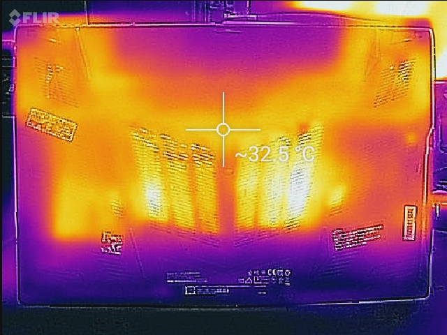 (+) Die Handballen und der Touchpad-Bereich sind mit gemessenen 29.6 °C kühler als die typische Hauttemperatur und fühlen sich dadurch kühl an.