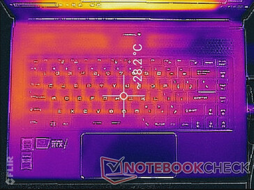 (+) Die Handballen und der Touchpad-Bereich sind mit gemessenen 29 °C kühler als die typische Hauttemperatur und fühlen sich dadurch kühl an.