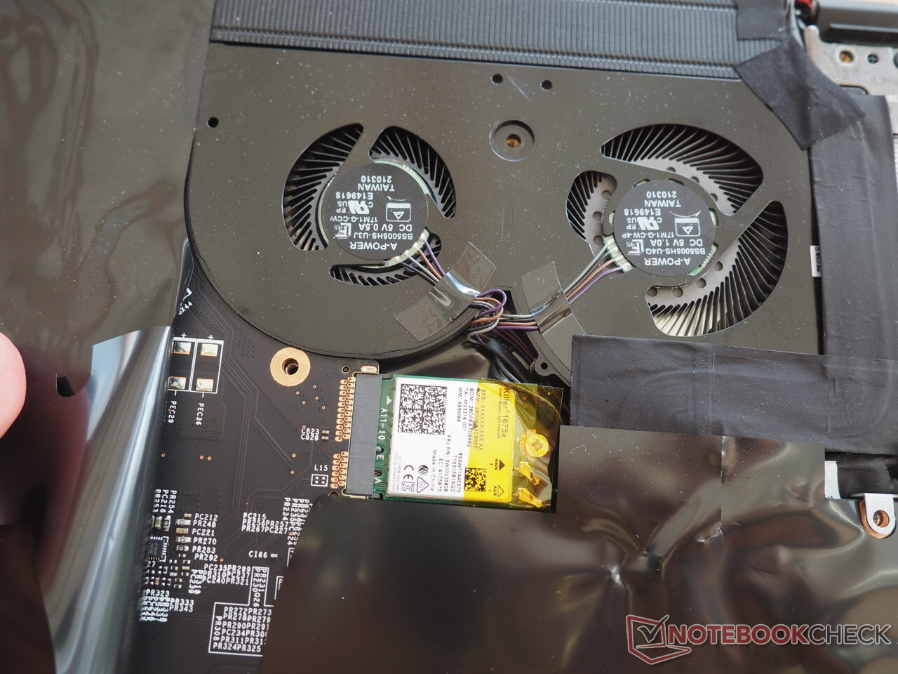 Die Wartungsmöglichkeiten fallen eher enttäuschend aus. Wer das Fabriksiegel auf dem Gehäuseboden durchbricht und 15 Kreuzschrauben entfernt, kann zwar die komplette Unterseite heraushebeln, im Inneren sind aufgrund riesiger, verklebter Folienflächen allerdings nur die Lüfter, der Akku, die M.2-Slots und das Funkmodul zugänglich. An das Kühlsystem von CPU bzw. GPU und den Arbeitsspeicher gelangt man ohne Weiteres nicht. Das ist unnötig und wird von anderen Herstellern besser gelöst.