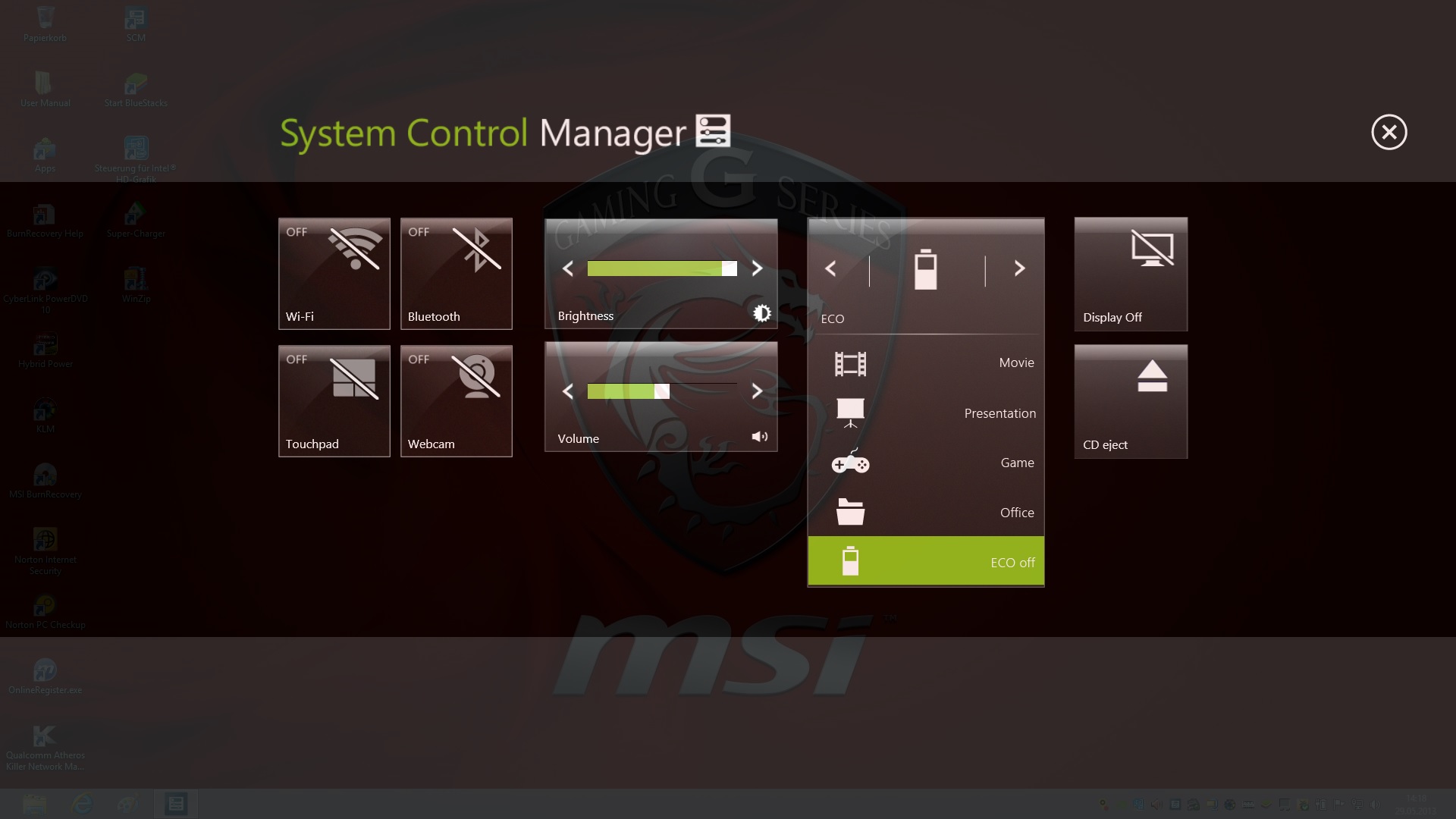 Im Auslieferungszustand sind knapp 40 Programme und Tools vorinstalliert. Neben der zeitlich begrenzten Trial-Version von Office 365 und Norton Internet Security entdeckt der Käufer die Windows Live Essentials 2012 und ein Tool zum Brennen der System Recovery (auch als versteckte Partition vorhanden). Klasse: Dank CyberLinks PowerDVD 10 kann das GT70 Blu-ray-Medien ohne Zusatzsoftware abspielen. Ein paar weitere Programme wie den System Control Manager finden Sie unten.