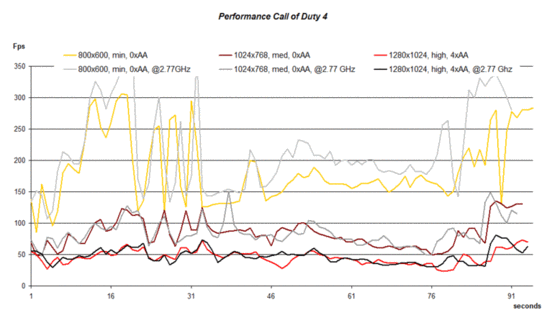 Call of Duty IV - Modern Warefare war in allen überprüften Auflösungsstufen gut spielbar. Der Einfluss der Turbo Funktion war allerdings nur bei niedrigster Detailstufe zu spüren. Bei hohen Details gilt hier nach wie vor die Grafikkarte als limitierender Faktor.