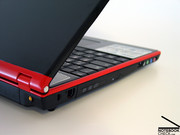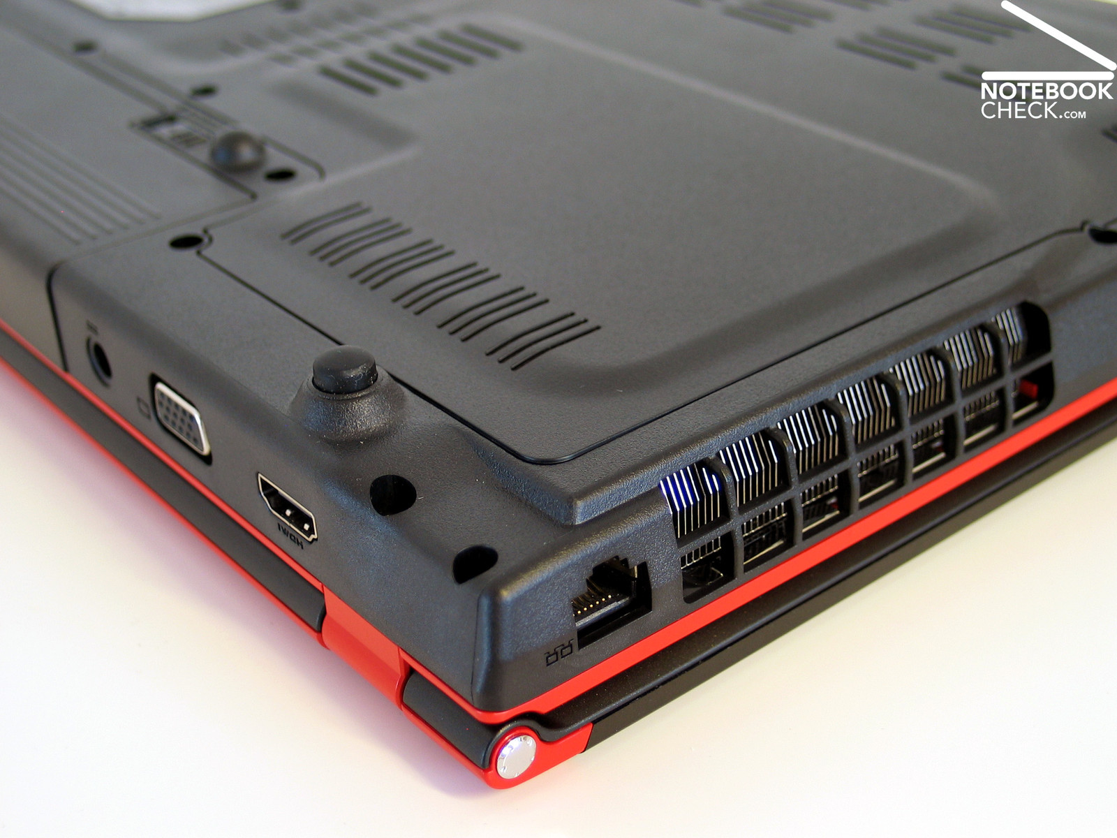Etwas Kritik müssen wir an der Positionierung der einzelnen Anschlüsse üben. So werden alle USB Ports sowie die USB/eSATA Schnittstelle an den Seitenkanten überaus weit vorne angeboten. Bereits der Anschluss einer Maus verursacht so unangenehmen Kabelsalat neben dem Gerät. Auch die Lüfteröffnung an der rechten Seitenkante ist unserer Meinung nach nicht optimal gelöst, da so beispielsweise Rechtshänder stets eine Hand im warmen Abluftstrahl haben was mit der Zeit durchaus unangenehm werden kann.