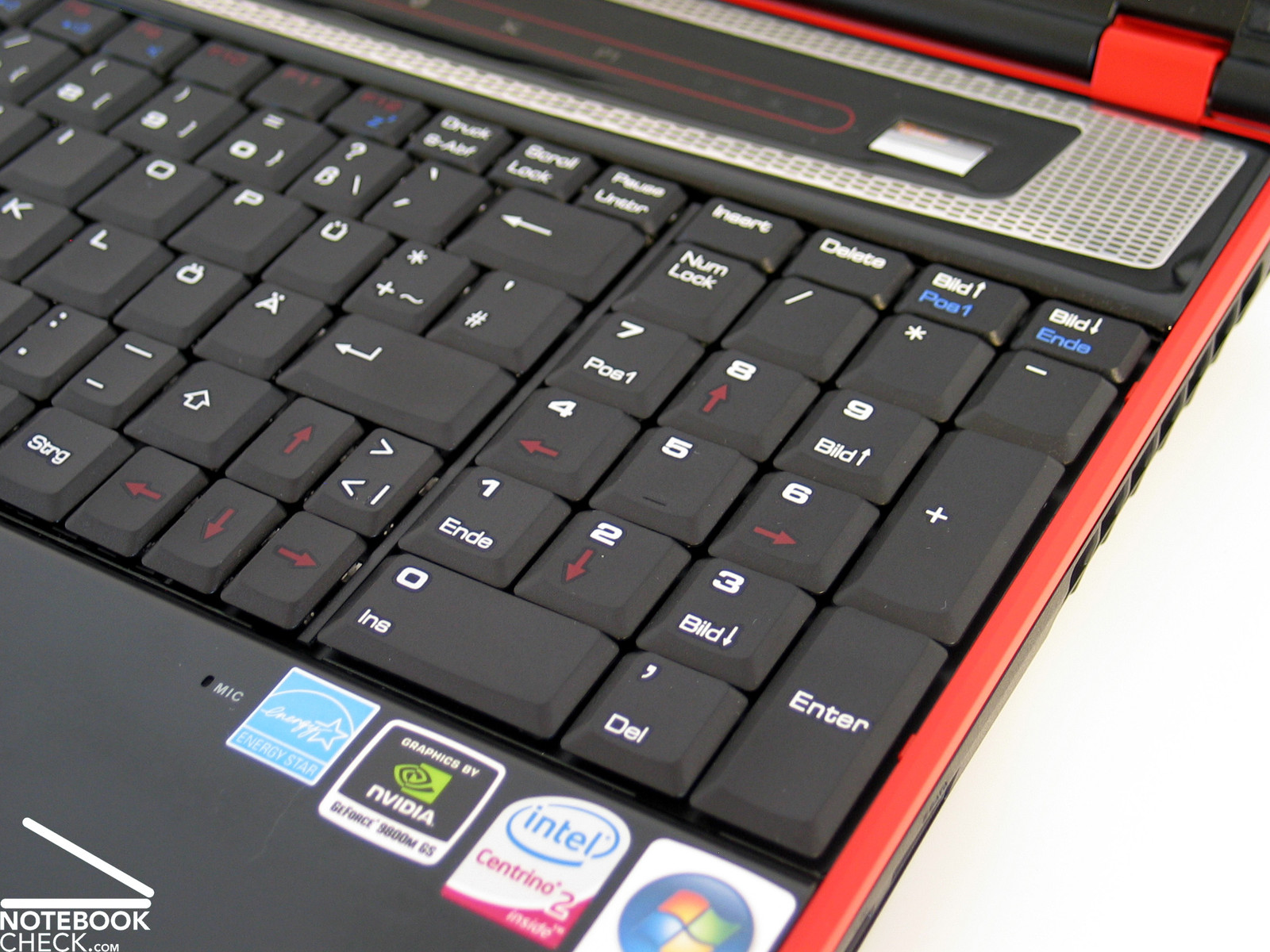 Als eines der wenigen Notebooks im 15.4 Zoll Format bietet das MSI GT627 eine Tastatur mit eigenem Nummernblock an. Die Frage ob eigenständiger Nummernblock oder nicht ist grundsätzlich eine schwierige, profitiert man doch meist ohne Nummernblock von einem großzügigeren Layout und größeren Tasten, während der Nummernblock bei der Eingabe von Zahlenmaterial überaus hilfreich sein kann. Inwiefern dieser bei Gaming-Notebooks allerings Sinn macht, mögen wir bezweifeln.