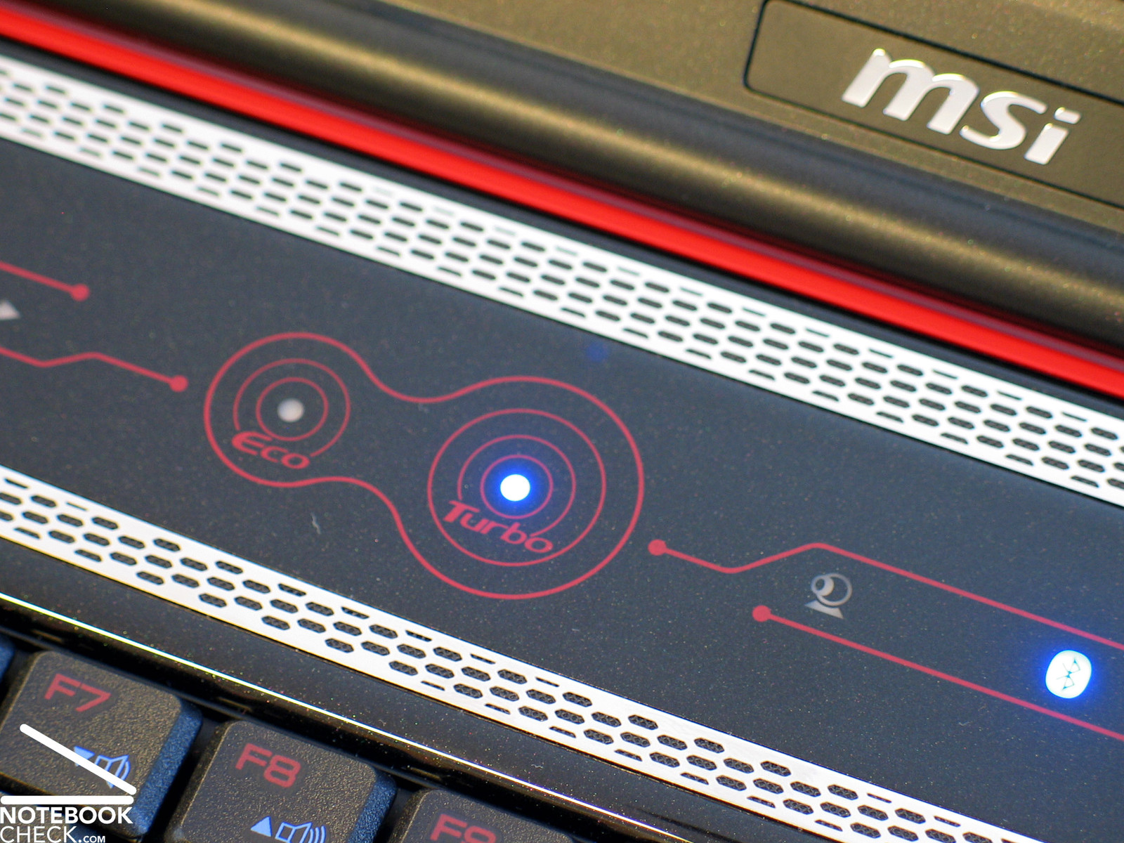 Optisch ansprechend gelöst wurden auch die angebotenen Zusatztasten in Form von berührungssensitiven Tipp-Zonen mit entsprechender Beleuchtung oberhalb der Tastatur. Nachteilig ist hier allerdings die glänzende Oberfläche, auf der sich schnell zahlreiche unschöne Fingerabdrücke ansammeln.
