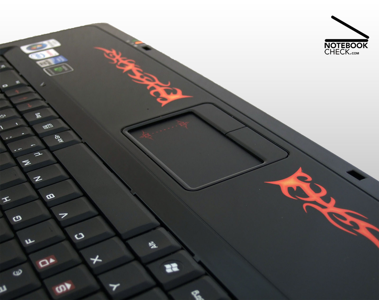 Der Mauszeiger lässt sich beim GX700 über das 7.4 mal 4.7 Zentimeter große Touchpad recht präzise über den Bildschirm navigieren. Die vertikale Scrollleiste gilft beim Navigieren in längeren Dokumenten und Websites. Aufgrund der enormen Bildschirmauflösung der integrierten WUXGA-Panels ist eine horizontale Scrollleiste ab Werk nicht vorgesehen, bei Bedarf lässt sich selbige aber natürlich mit wenigen Klicks nachträglich über den Treiber konfigurieren. Die beiden unter dem Pad liegenden Tasten arbeiten im Test etwas schwergängig und insbesondere die linke deutlich zu laut, erfüllen ihren Job aber insgesamt gesehen durchaus zufrieden stellend.