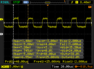 | PWM Frequency (Hz) | 25000 ? | 59.5 ? | 131700 | |||