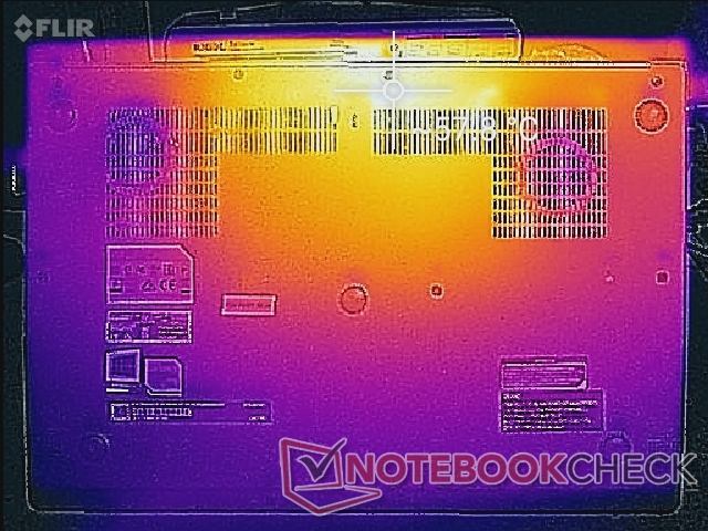 (-) Auf der Unterseite messen wir eine maximalen Wert von 58.2 °C (im Vergleich zum Durchschnitt von 36.8 °C).