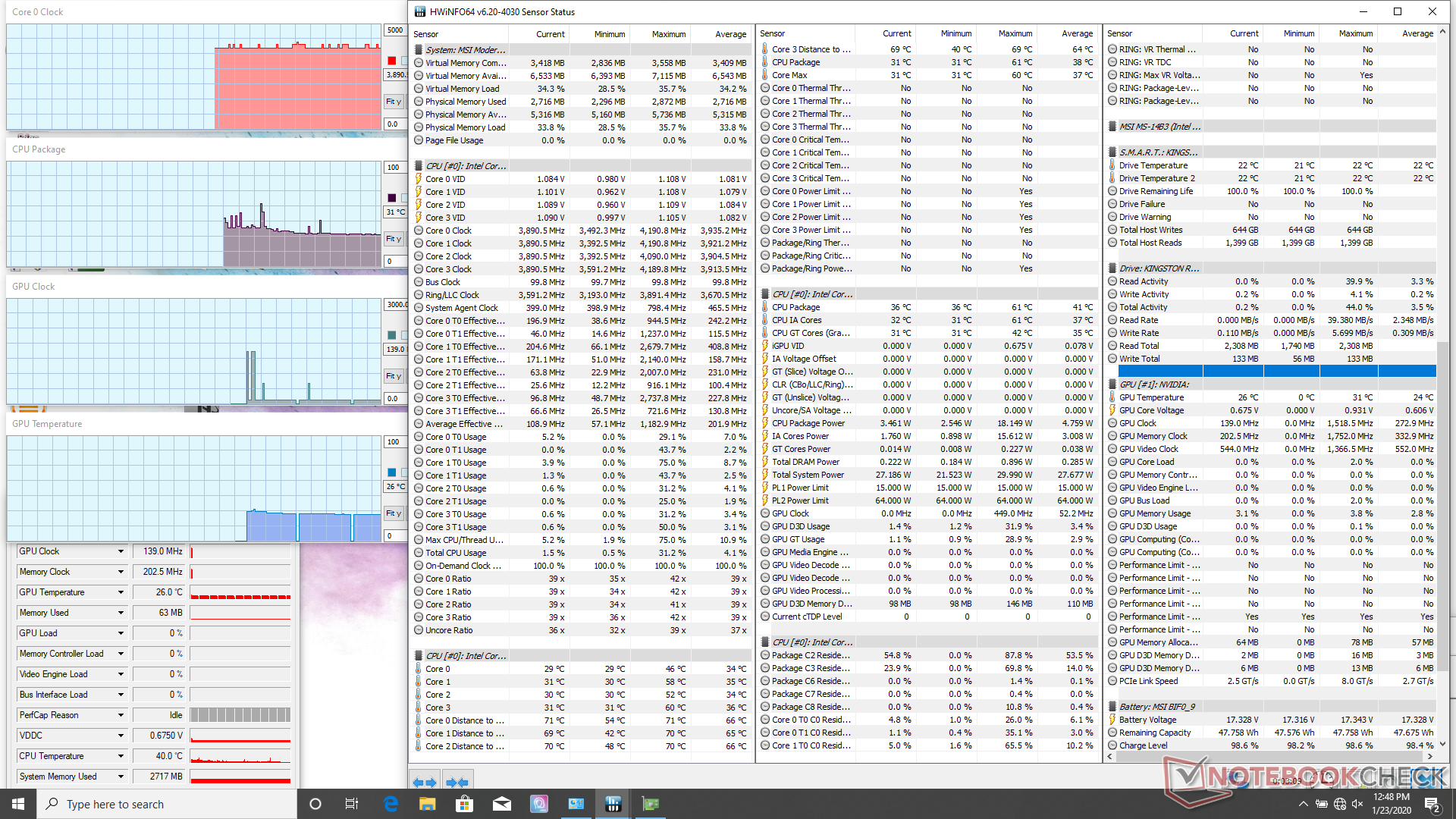 | CPU Clock (GHz) | GPU Clock (MHz) | Average CPU Temperature (°C) | Average GPU Temperature (°C) | |
