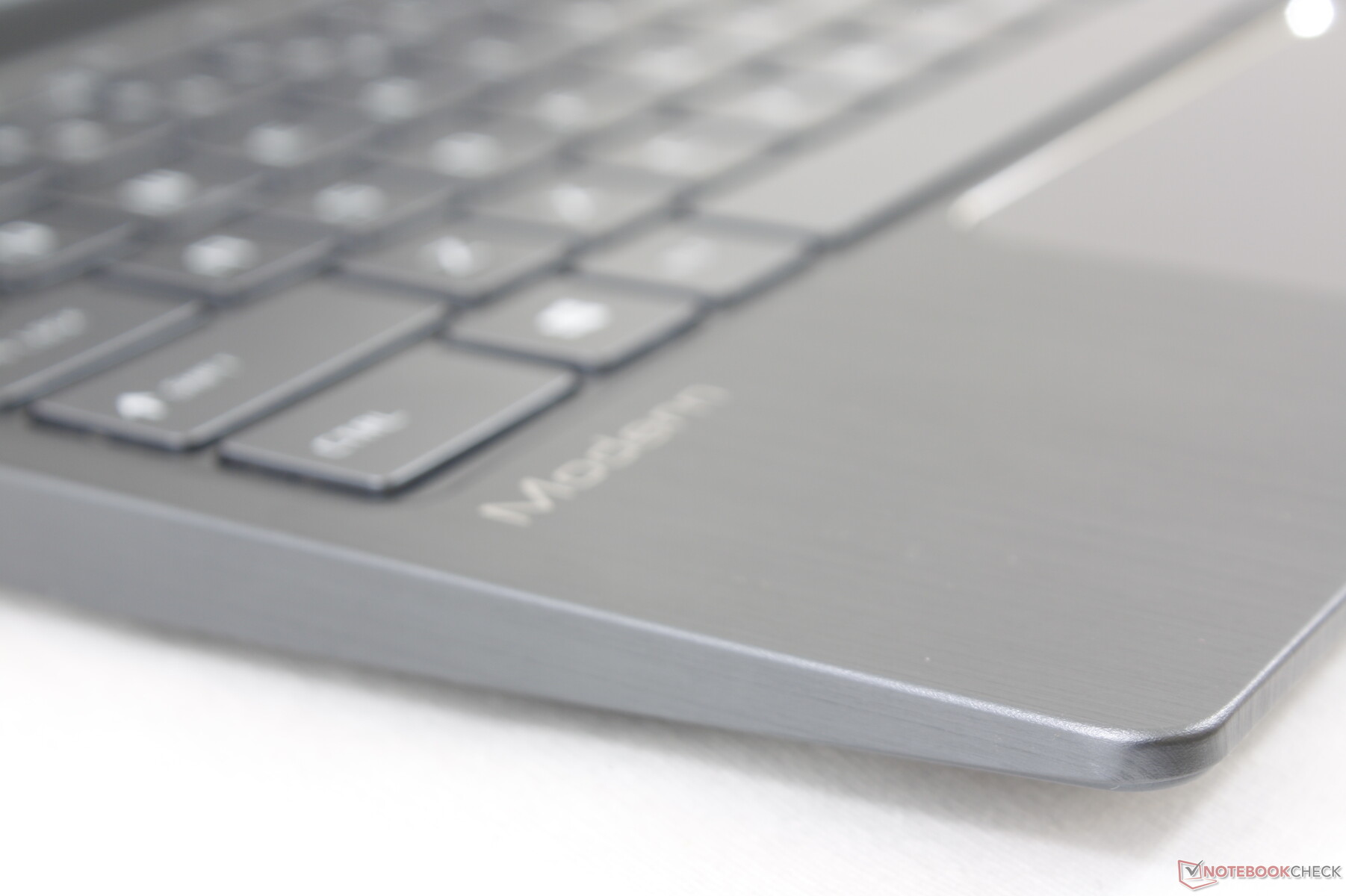 Durch die dünne Konstruktion und die flexiblen Oberflächen ist das Modern 14 mit 1,2 kg deutlich leichter als viele Alternativen. Das Gewicht ist mit dem des 13,3 Zoll großen Dell XPS 13 nahezu identisch, allerdings bekommt man hier einen 14-Zoll-Bildschirm. Die teureren Laptops Yoga C940-14 und Prestige 14 sind jeweils etwas schwerer und in jeder Dimension etwas kleiner.