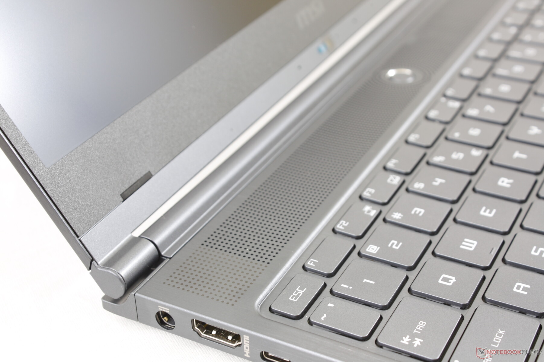 Trotz dem dünnen Profil und dem geringen Gewicht hat MSI bei der Anschlussausstattung nicht gespart. Mit einem vollwertigen HDMI- und vielen USB-A-Anschlüssen ist man hier flexibler als beim XPS 13 und dem HP Spectre 13. Die größte Schwäche ist, dass der USB-C-Anschluss hier anders als beim Prestige 14 kein Thunderbolt 3 unterstützt. Das Anschluss-Layout ist zwar gut, Verbesserungspotenzial besteht jedoch trotzdem; USB-A-Anschlüsse auf beiden Seiten wären praktisch gewesen, und der HDMI-Anschluss liegt sehr nahe beim Netzanschluss.
