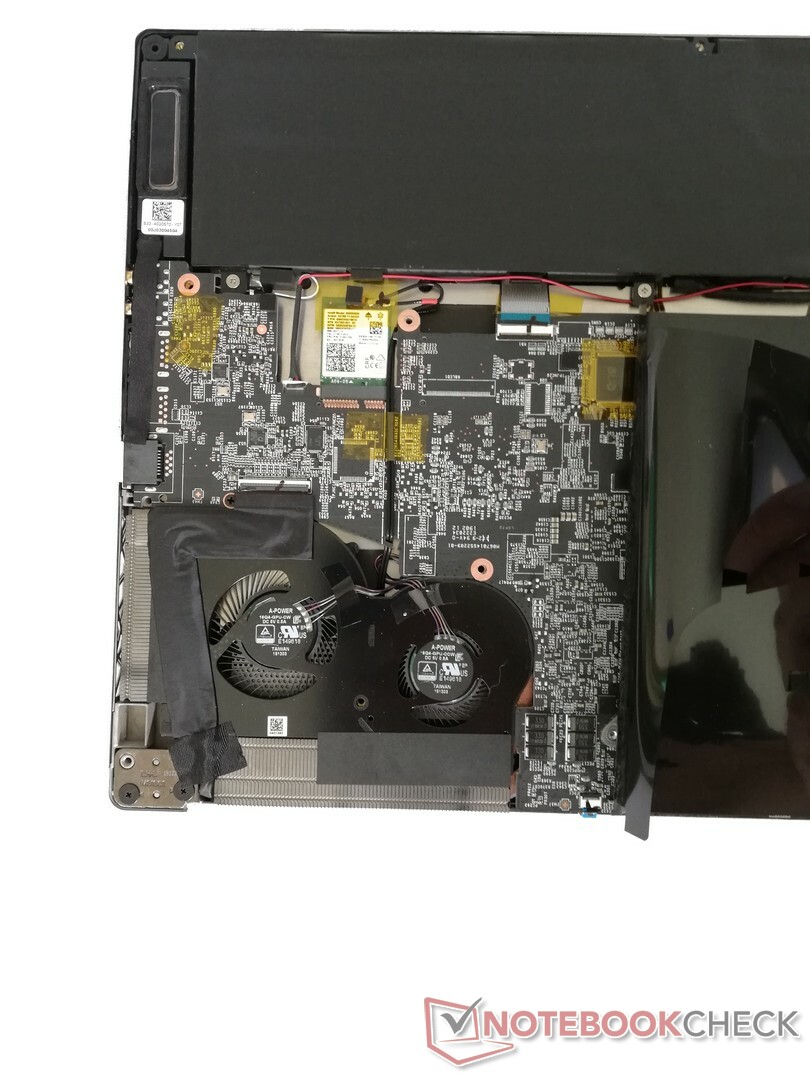 Das MSI P65 Creator 9SF bietet nur eingeschränkte Wartungsmöglichkeiten. Die Bodenplatte lässt sich zwar entfernen, nachdem alle entsprechenden Schrauben gelöst wurden, im Inneren ist aber lediglich der direkte Zugriff auf das WLAN-Modul möglich. Die SSD befindet sich scheinbar unter dem Mainboard und ist ohne eine komplette Demontage des Notebooks nicht zu erreichen. Der Arbeitsspeicher lässt sich ebenfalls nicht aufrüsten oder austauschen, aber immerhin sind die Lüfter für Reinigungszwecke gut zu erreichen.