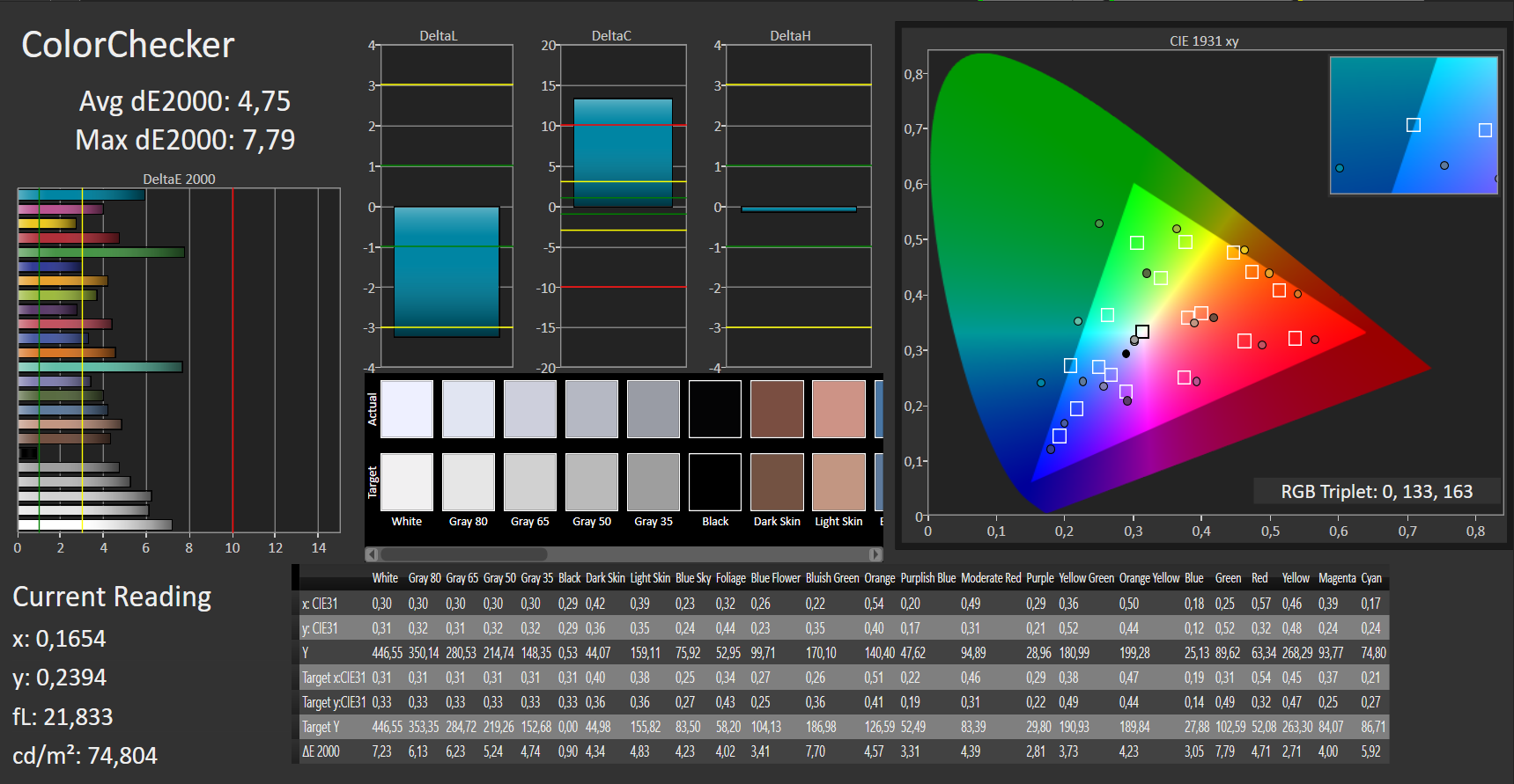 ΔE ColorChecker Calman: 4.75 | ∀{0.5-29.43 Ø4.78}