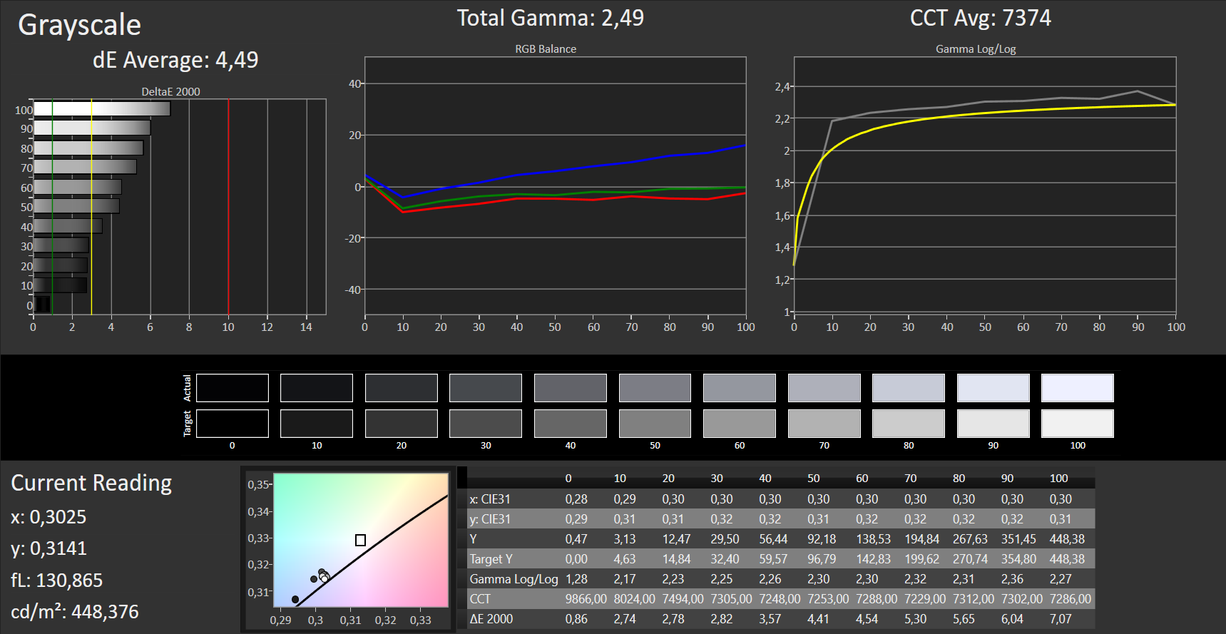 ΔE Greyscale Calman: 4.49 | ∀{0.09-98 Ø5}