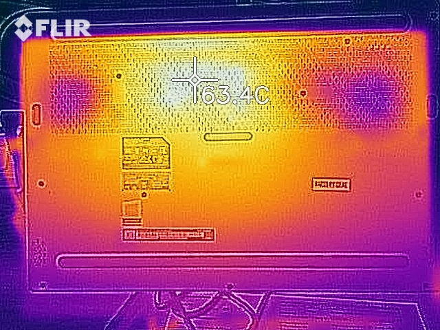 (-) Auf der Unterseite messen wir eine maximalen Wert von 60.4 °C (im Vergleich zum Durchschnitt von 39.2 °C).