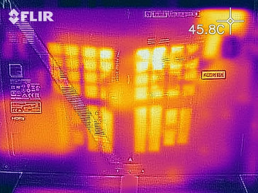 (±) Auf der Unterseite messen wir eine maximalen Wert von 43.7 °C (im Vergleich zum Durchschnitt von 39.2 °C).
