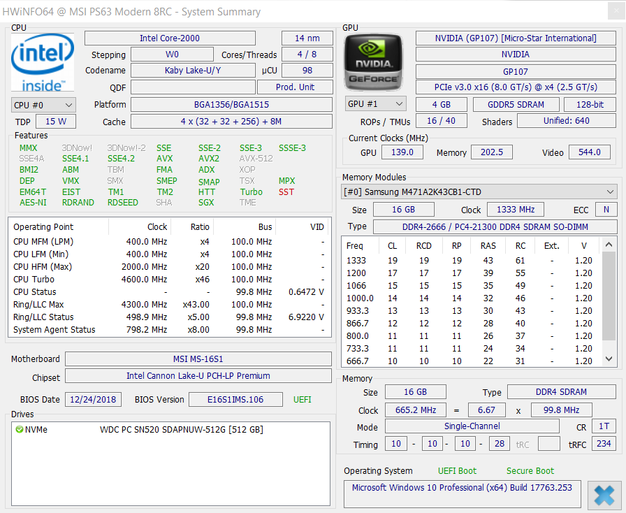 Test MSI PS63 Modern 8RC (GTX 1050 Max-Q, i7-8565U) Laptop
