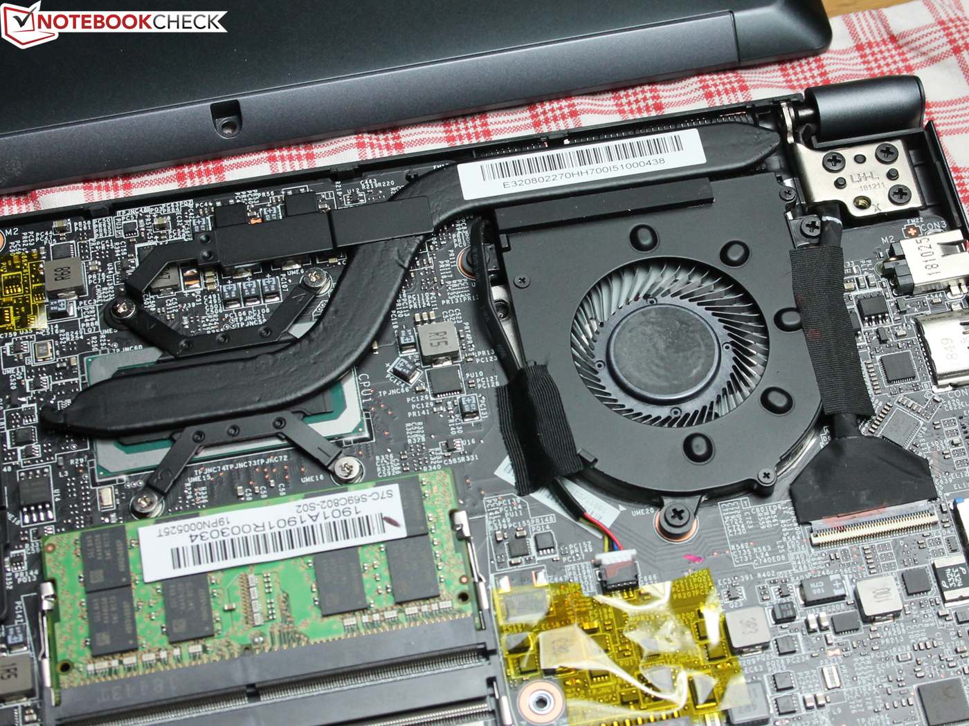 Die konservative Temperatureinstellung beschneidet allerdings zügig die ohnehin nicht so üppige Rechenleistung des 15-Watt-Quadcores. Es kommt zwar nicht zu einem Throttling, doch der CPU-Turbo wird nur schwach ausgenutzt (Dauerlast). Die GTX 1050 hingegen nicht beschnitten.