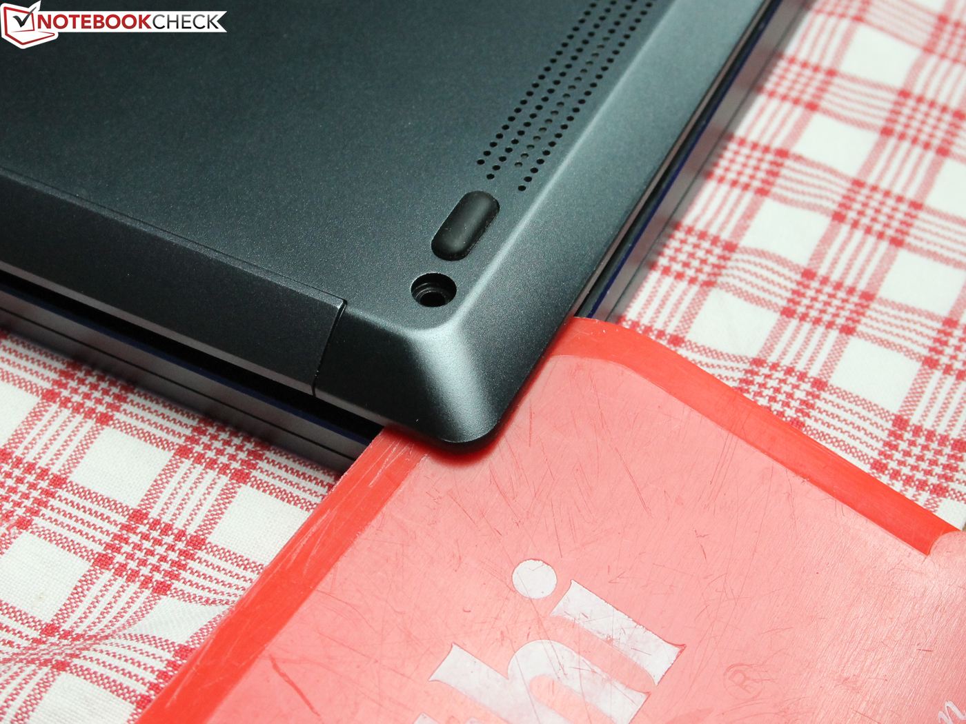 A- als auch B-Cover bestehen aus Aluminium. Die Bodenplatte ist von unten angeschraubt, sie besteht aus einem lackierten Kunststoff. Die Base ist nicht hundertprozentig frei von Verwindungen. Wir können das Gerät aber an einer Ecke halten, ohne dass selbiges verbiegt. Von unten her können wir die dünne Bodenplatte punktuell hier und dort eindellen, das schadet der Wertigkeit aber wenig.