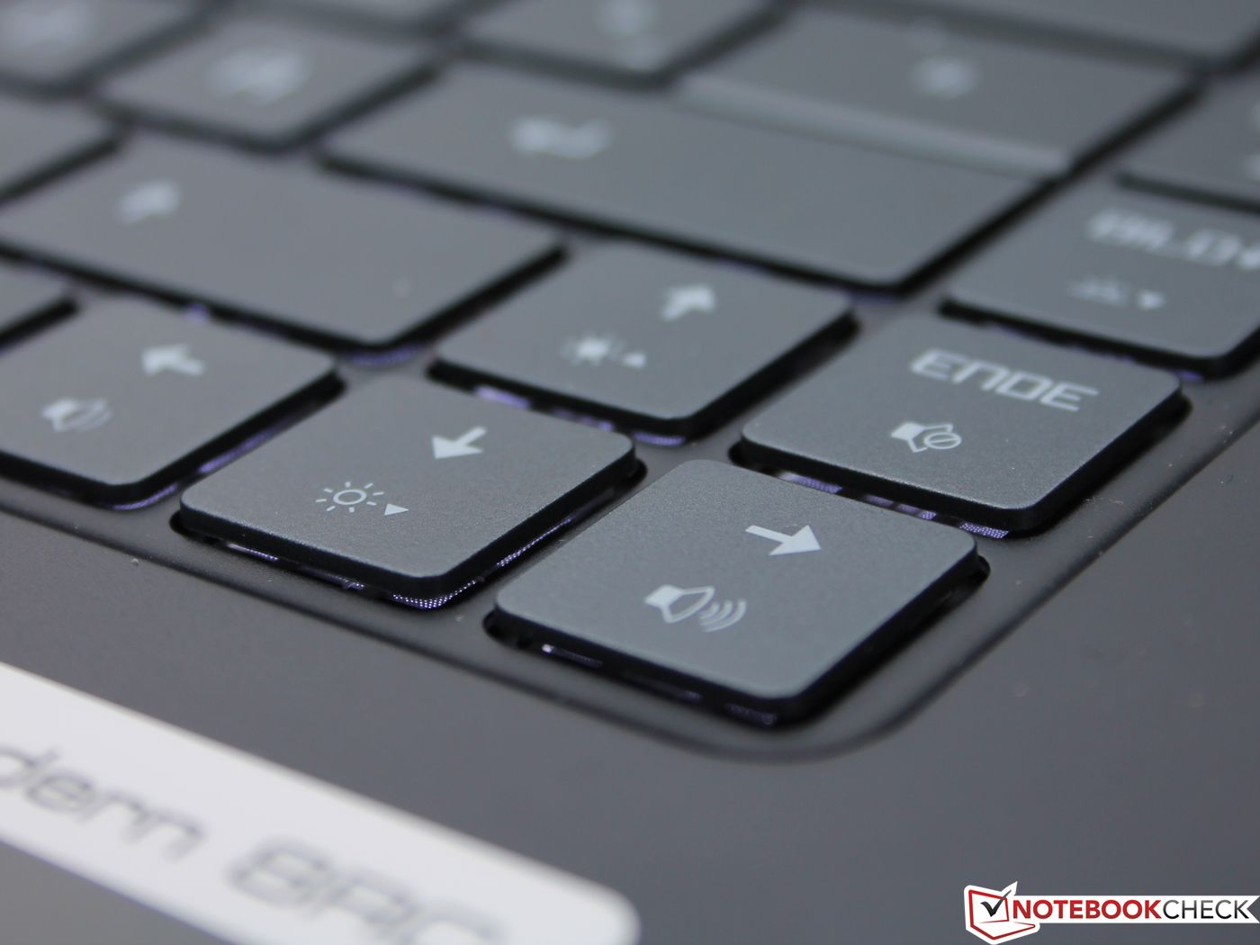 Die einzige kleine Umgewöhnung ist die Funktionstaste, die sich nicht links, sondern rechts bei den Richtungstaste befindet. Wir finden das gut, so können wir mit einer Hand Helligkeit, Lautstärke oder Tastaturbeleuchtung regulieren, während wir uns gerade mit einem Charakter im Game vorwärtsbewegen (linke Hand WASD).