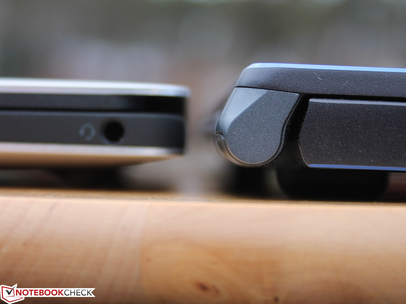 Das Gelenk klappt den Deckel auf bis zu 140° auf und hält ihn ohne Nachwippen fest in seiner Position. Die Gelenke sind nicht zu straff, aber auch nicht lasch eingestellt.