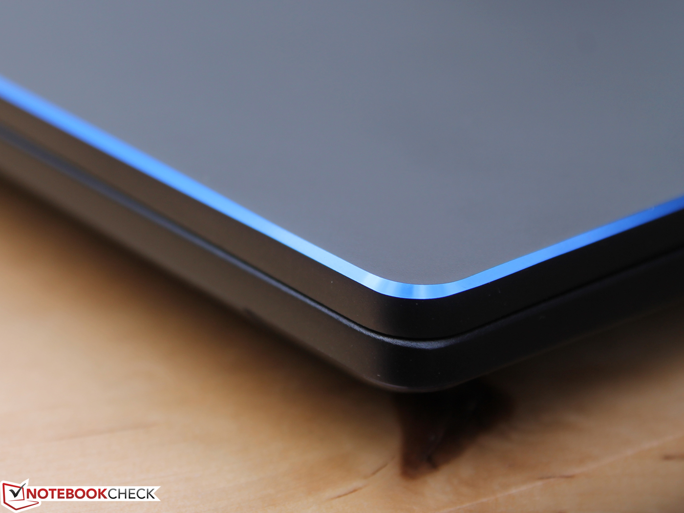 Beim Deckel mit dem dünnen Displayrahmen ist die Festigkeit nicht so gut, er kann begrenzt verzogen bzw. von hinten eingedrückt werden. Positiv: Egal wie stark wir an den Ecken zerren oder von hinten auf den Deckel drücken, es kommt nicht zu Bildveränderungen. Das Panel hat also eine gewisse Flexibilität.