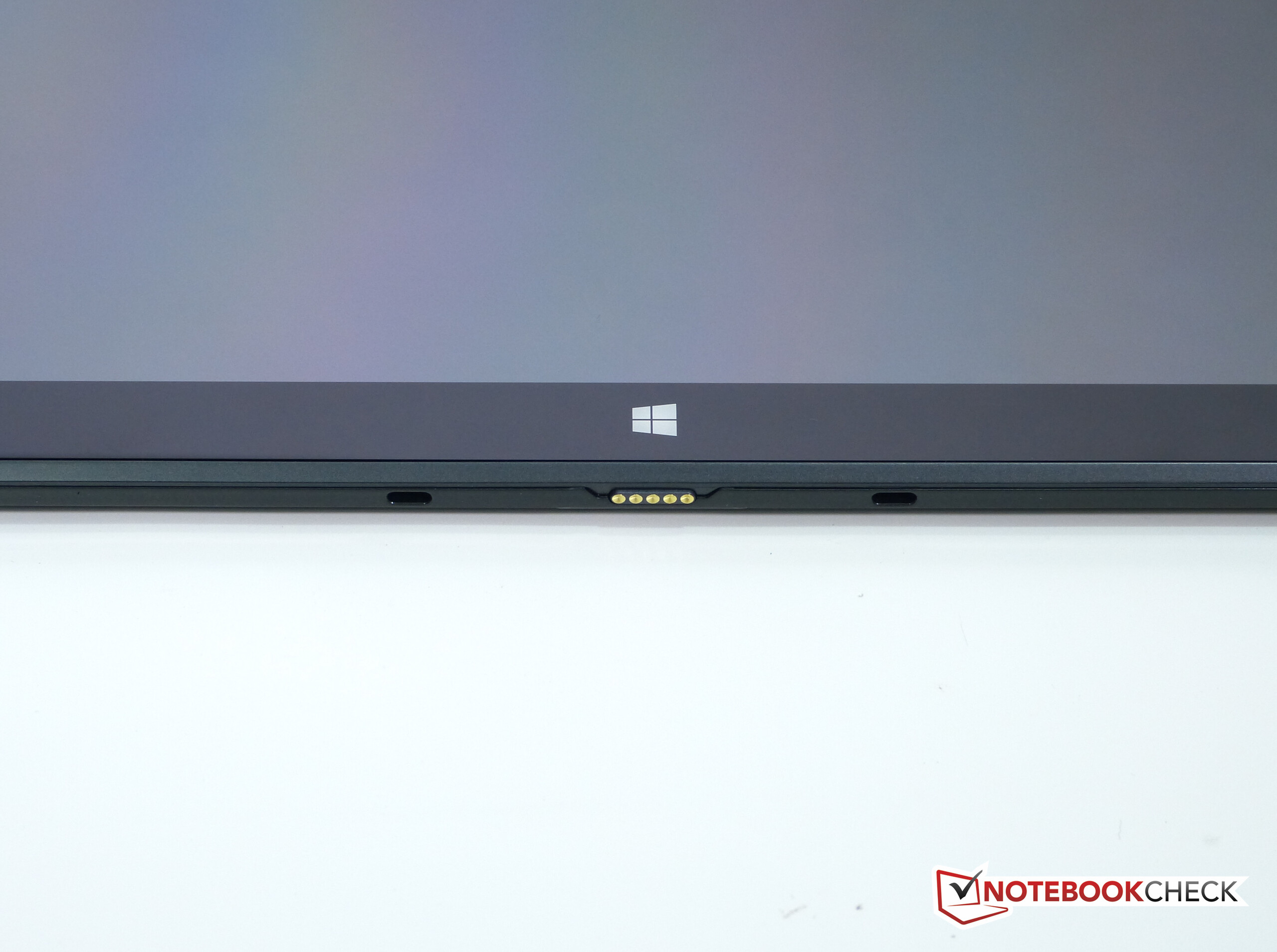 Am Tablet befinden sich Anschlüsse für Mini-HDMI (nicht Micro-HDMI, wie es bei kleinen Windows Tablets oft der Fall ist), Micro-USB-2.0 (Adapterkabel im Lieferumfang enthalten), Micro-SD, ein Headset sowie das Netzteil, womit die Grundlagen abgedeckt wären. Die dedizierte Steckverbindung an der Unterseite kann ausschließlich für die Tastaturhülle verwendet werden. Für eine Ethernet-Verbindung wird ein USB-Ethernet-Adapter benötigt (Test war erfolgreich), und auch eine USB-Dockingstation kann via USB angeschlossen werden. Wir haben es mit einer Belkin USB 3.0 Dual-Video Dockingstation getestet. Sie verfügt über Ausgänge für DVI, eine Tastatur und eine Maus sowie Ethernet, und wir haben diesen Testabschnitt mit diesem Setup verfasst. Für Schreibarbeiten ist das sicherlich eine gute Lösung, allerdings führt es auch zu einer CPU-Last von 6-15 % sowie einer reduzierten Bildwiederholrate und ist damit nicht für den langfristigen Einsatz als Desktop geeignet.