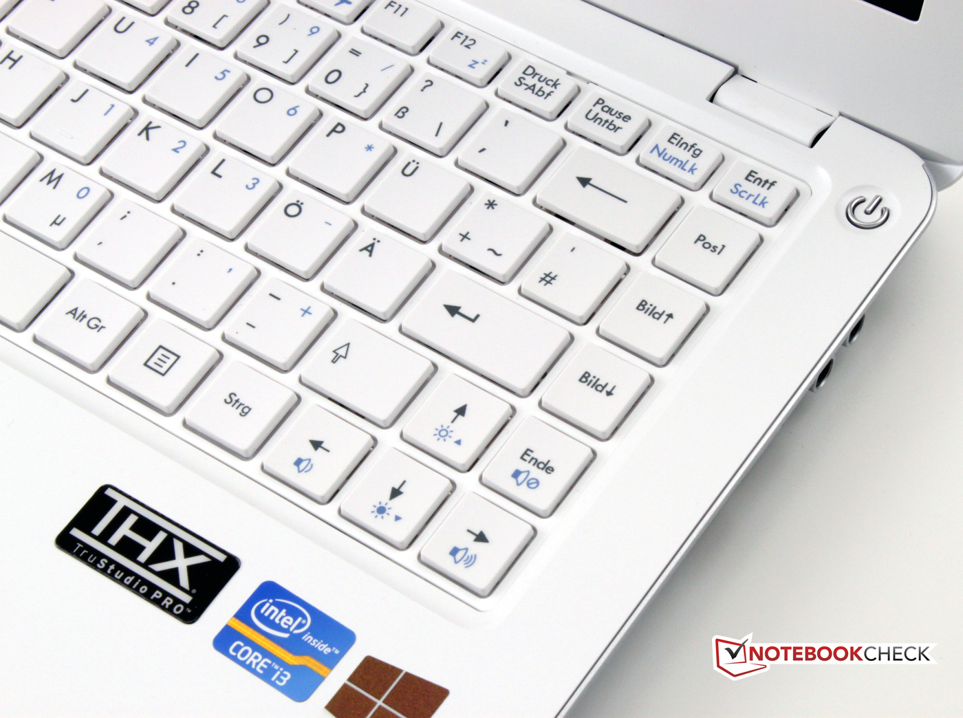 Die Tastatur des S30 ist eine Standardtastatur mit 103 Tasten ohne Nummernblock im Chiclet-Design. Die Tasten sind horizontal leicht gewölbt und haben eine matte Oberfläche. Der Hub ist recht flach. Durch den präzisen Druckpunkt und die geringen Klickgeräusche ist die Tatstatur als angenehm zu bezeichnen. Positiv fällt auf, dass es keine extrem kleinen Tasten gibt. Die Pfeiltasten haben die gleiche Größe wie die Buchstaben von 14x14 Millimetern. Lediglich die Funktionstasten fallen mit 14x10 Millimetern etwas flacher aus, was jedoch nicht weiter störend wirkt.