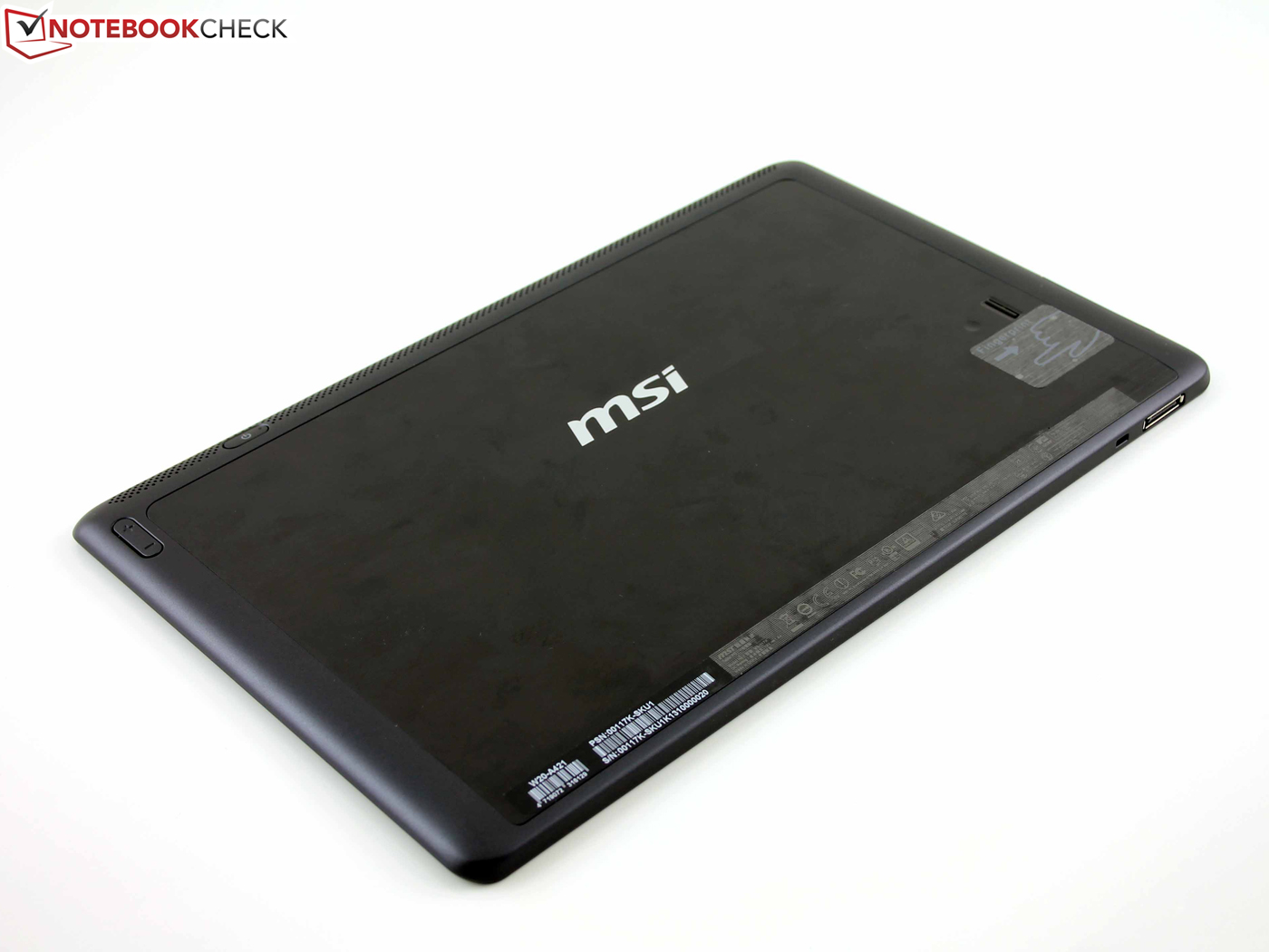 Die Lautsprecher befinden sich unter winzigen Öffnungen an der oberen Rückseite des Tablets. MSI verbaut dem flachen Chassis entsprechend winzige Speaker, die mangels Volumen die Höhen überbetonen, während Mitten und Tiefen vernachlässigt werden. Bei hoher Lautstärke kratzen die kleinen Speaker deutlich und der hohe Pitch schmerzt fast in den Ohren. Über den Klinkestecker können Lautsprecher oder Kopfhörer angeschlossen werden, was für audiophile Nutzer die erste und einzige Wahl ist.