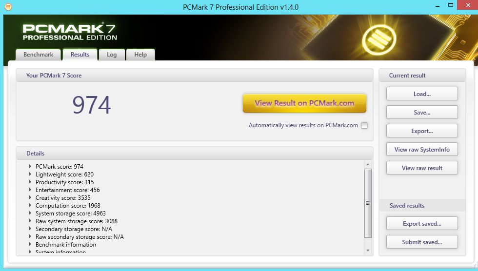 | PCMark 8 Home Score Accelerated | 988 Punkte | |