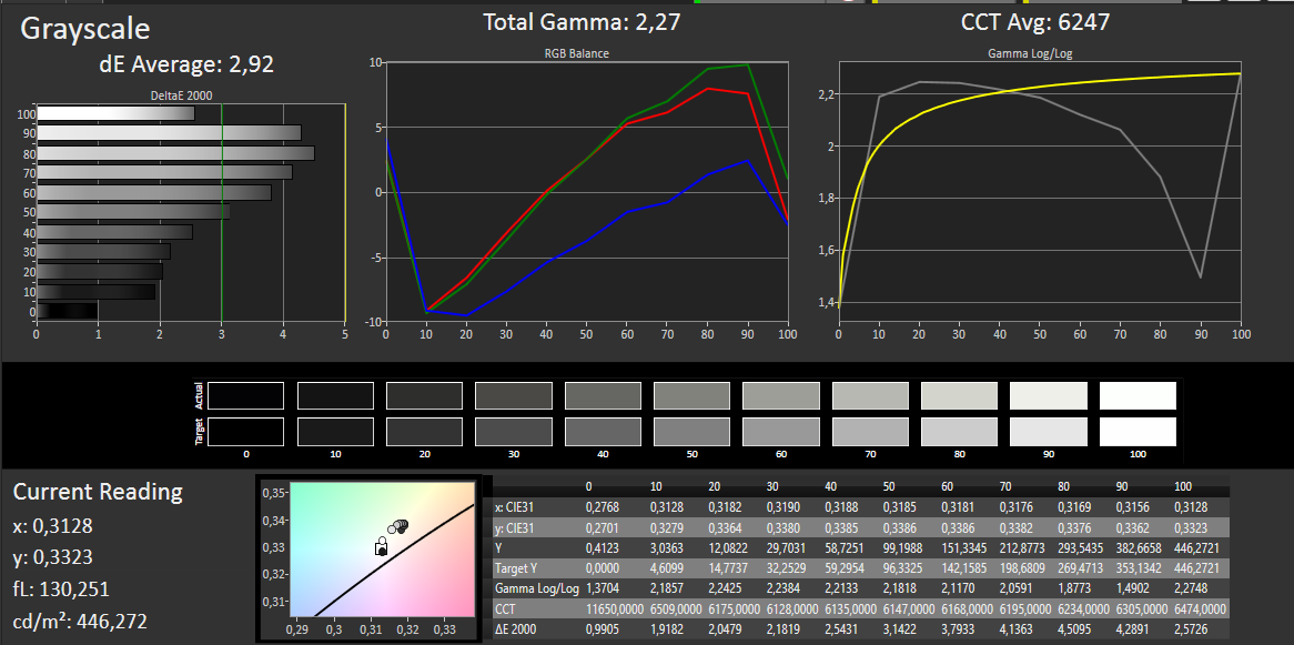 ΔE Greyscale Calman: 2.92 | ∀{0.09-98 Ø5}