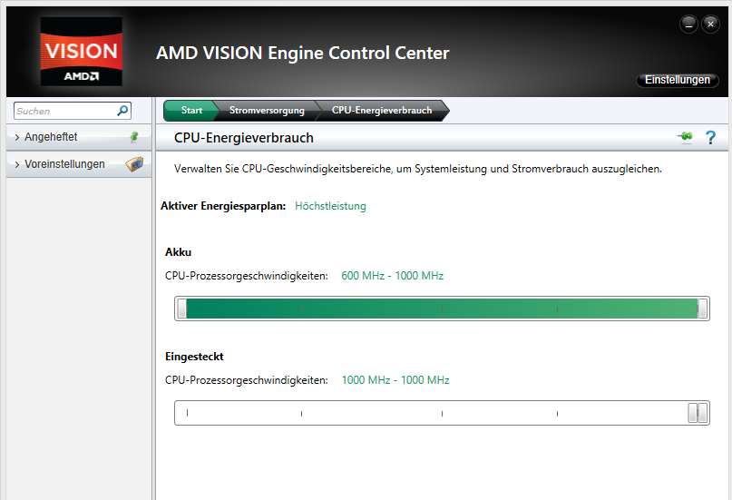 Auf Grund der Vergleichbarkeit mit dem Bay-Trail-Atom führen wir die folgende Vergleichstabelle mit den 32-Bit-Werten des älteren Cinebench R10 an. Diese zeigen beachtliche Vorsprünge, speziell beim neuen Atom Z3740 (+209 %). Auch hier liegt dass Akoya E1317 (75 %) vorn. Ein Blick auf die Taktung entlarvt den Grund: Die zwei Rechenkerne der APU laufen konstant mit 600 MHz (statt 1.000 MHz), Windows gibt konsequent eine Auslastung von höchstens 59 % an. In den Windows Settings bzw. im AMD Treiber steht die Leistung auf 100 %. Hier hat MSI die Taktung beschnitten. Die Scores bleiben im Akkubetrieb übrigens identisch niedrig.