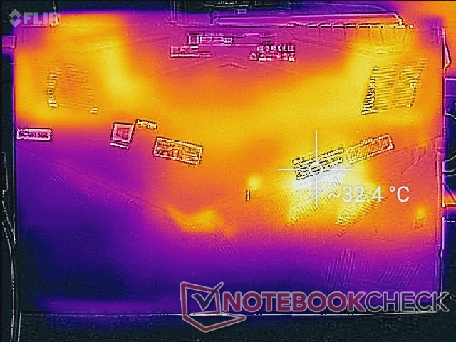 (+) Die Handballen und der Touchpad-Bereich sind mit gemessenen 29.4 °C kühler als die typische Hauttemperatur und fühlen sich dadurch kühl an.