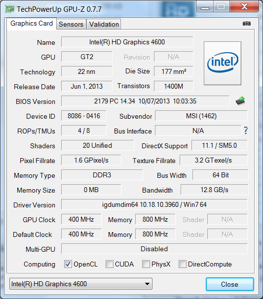 Die minimale Leistungsaufnahme (Intel HD Graphics 4600) fällt mit 8,8 Watt im Energiesparmodus und minimaler Display-Helligkeit sehr niedrig aus. Mit ganz ausgeschaltetem Bildschirm verringert sich diese sogar nochmals auf 7,3 Watt. Hieran kann man erkennen, dass MSI sein System gut abgestimmt hat und verbrauchsgünstige Komponenten verbaut. Der maximale Energiebedarf im Leerlauf von 22,4 Watt wird vor allem durch das Höchstleistungsprofil, der CPU und die zugeschaltete Nvidia Grafik generiert.