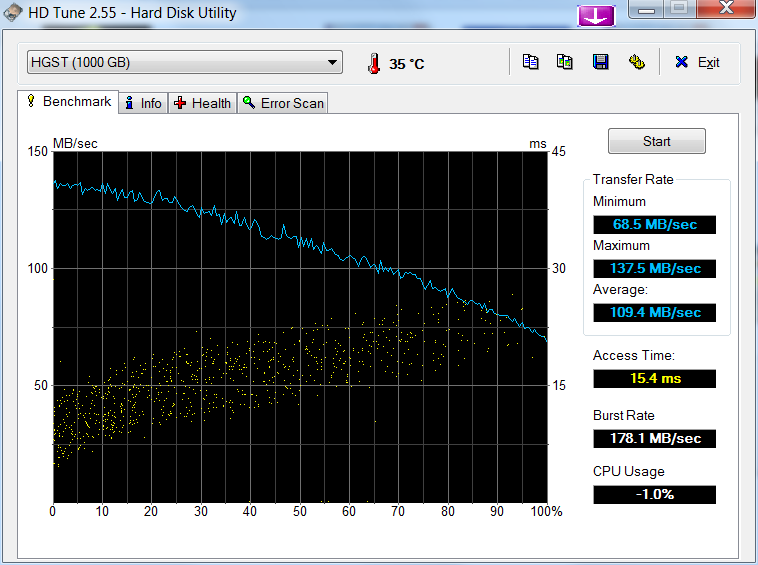 Als Datencontainer hat man darüber hinaus noch eine konventionelle Festplatte mit 1 TB Speicher zur Verfügung, die mit Übertragungsraten von maximal 137 MB/s und einer Zugriffszeit von 15,4 ms allerdings auch deutlich gemächlicher zu Werke geht. Ein zweiter 2,5-Zoll-Festplatten-Schacht ist frei. Ein SATA-Anschluss ist hier aber genauso wenig zu finden, wie Befestigungsmöglichkeiten für ein solches Laufwerk.
